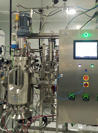 • Biorreactor fabricado totalmente en acero inoxidable de capacidad de trabajo 50 litros con sistema de esterilización «in situ».